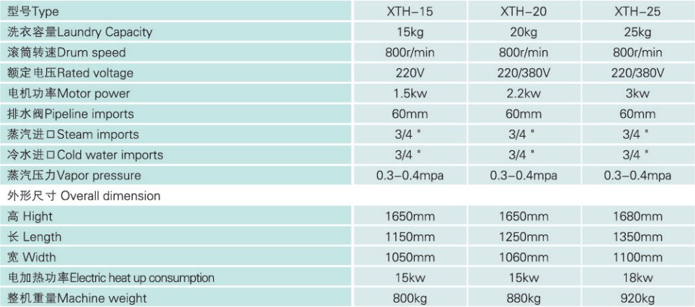 XTH系列變頻洗脫烘全自動(dòng)洗衣機(jī)是我公司研制開(kāi)發(fā)的新一代洗滌機(jī)械產(chǎn)品,實(shí)現(xiàn)完全防震結(jié)構(gòu),有效的解決洗衣機(jī)脫水震動(dòng)大這一致命弱點(diǎn)。實(shí)現(xiàn)了洗脫烘一體化,是理想的洗滌機(jī)械產(chǎn)品。
